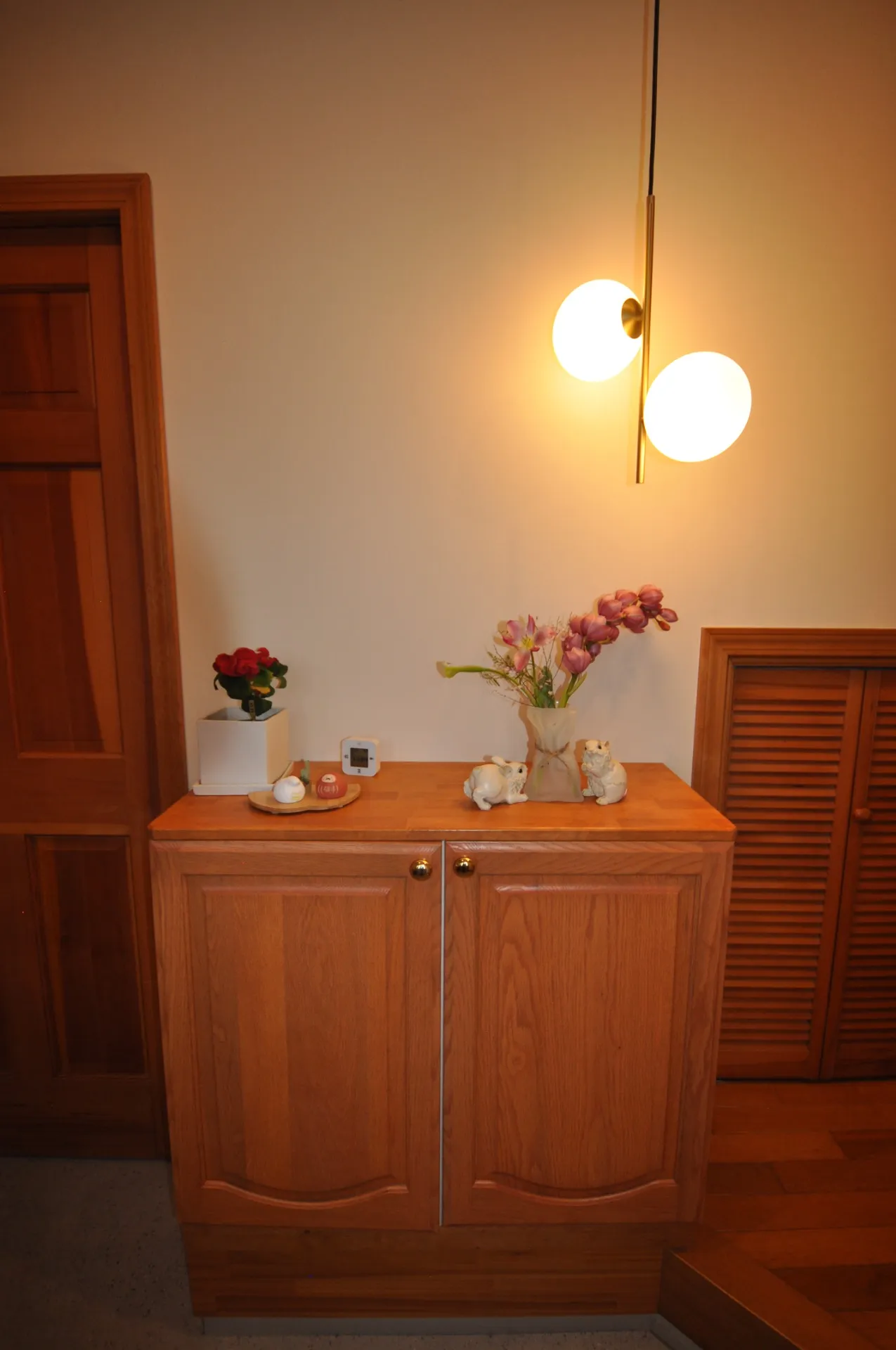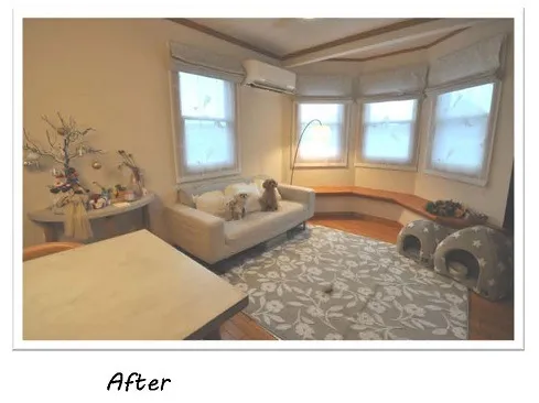もともとの家も輸入住宅でしたが、2000年代当時の流行だった柄物の壁紙のリビングは、私たち子世帯の好みとは合わず…。そこで、内装はシンプルに一新し、さらにペット臭対策として消臭機能のある壁紙を選んで「お化粧直し」しました。